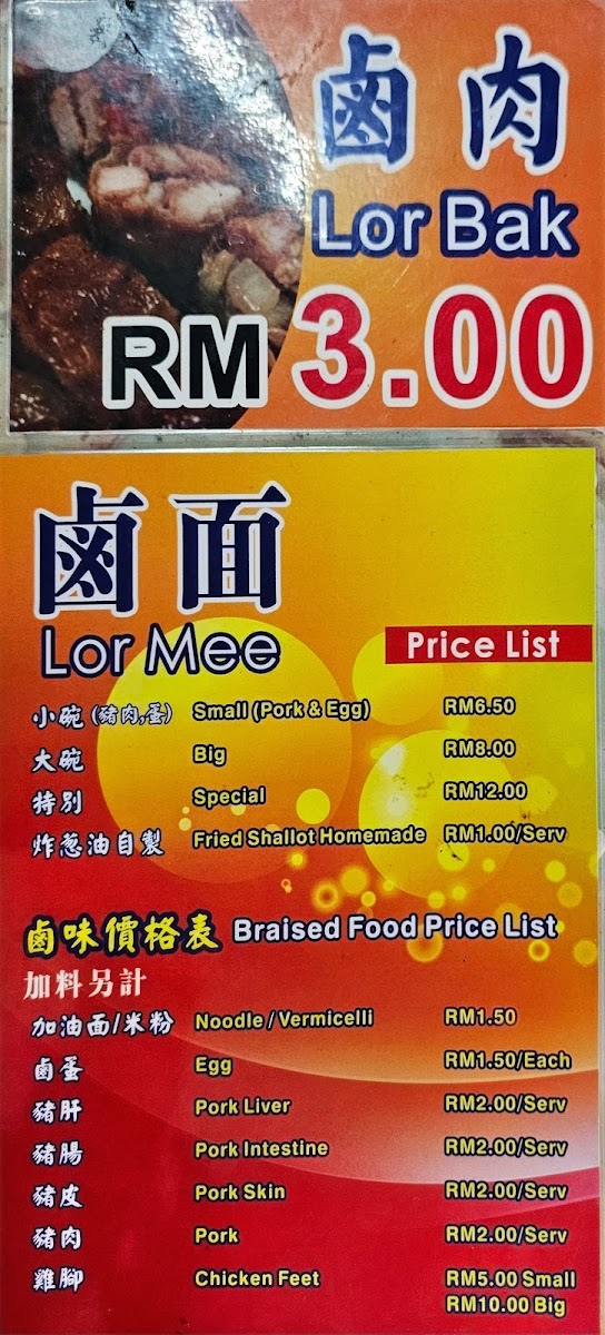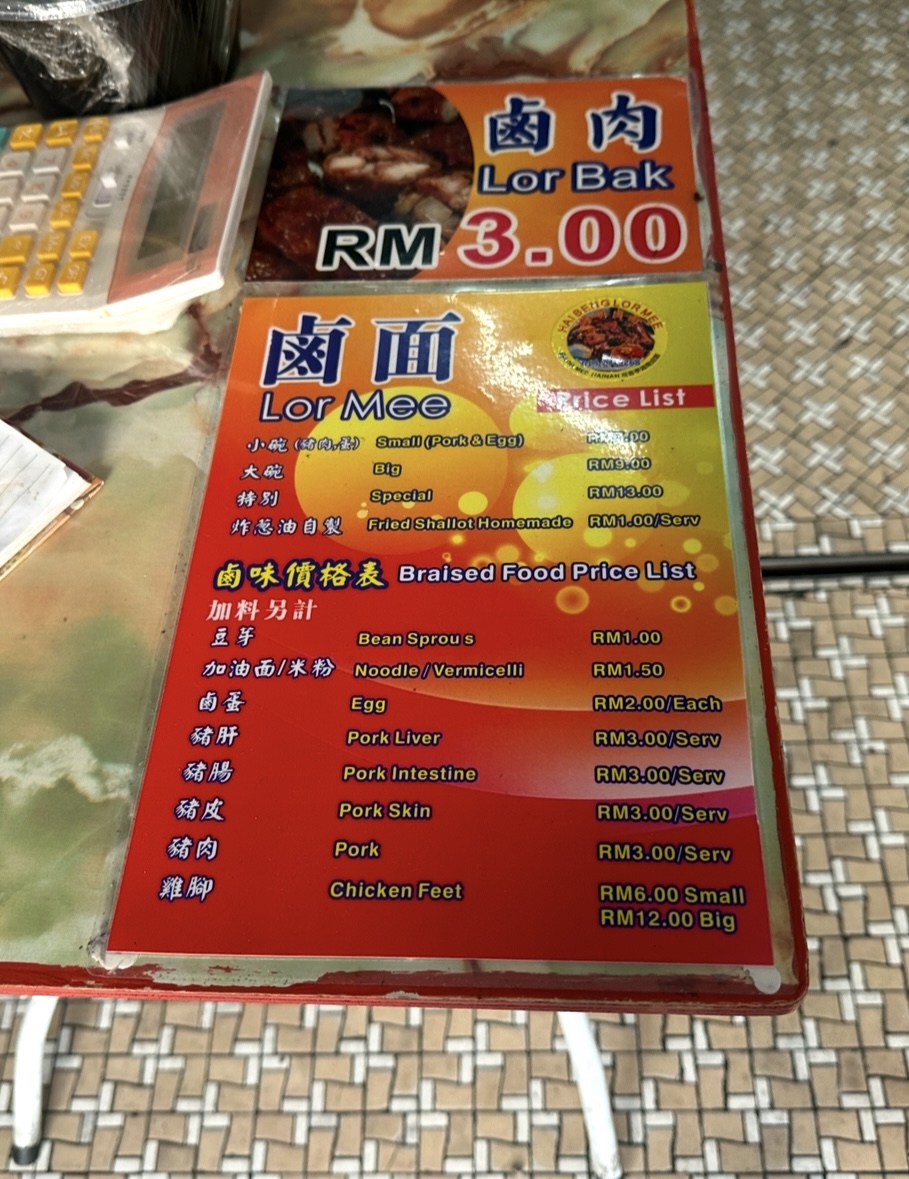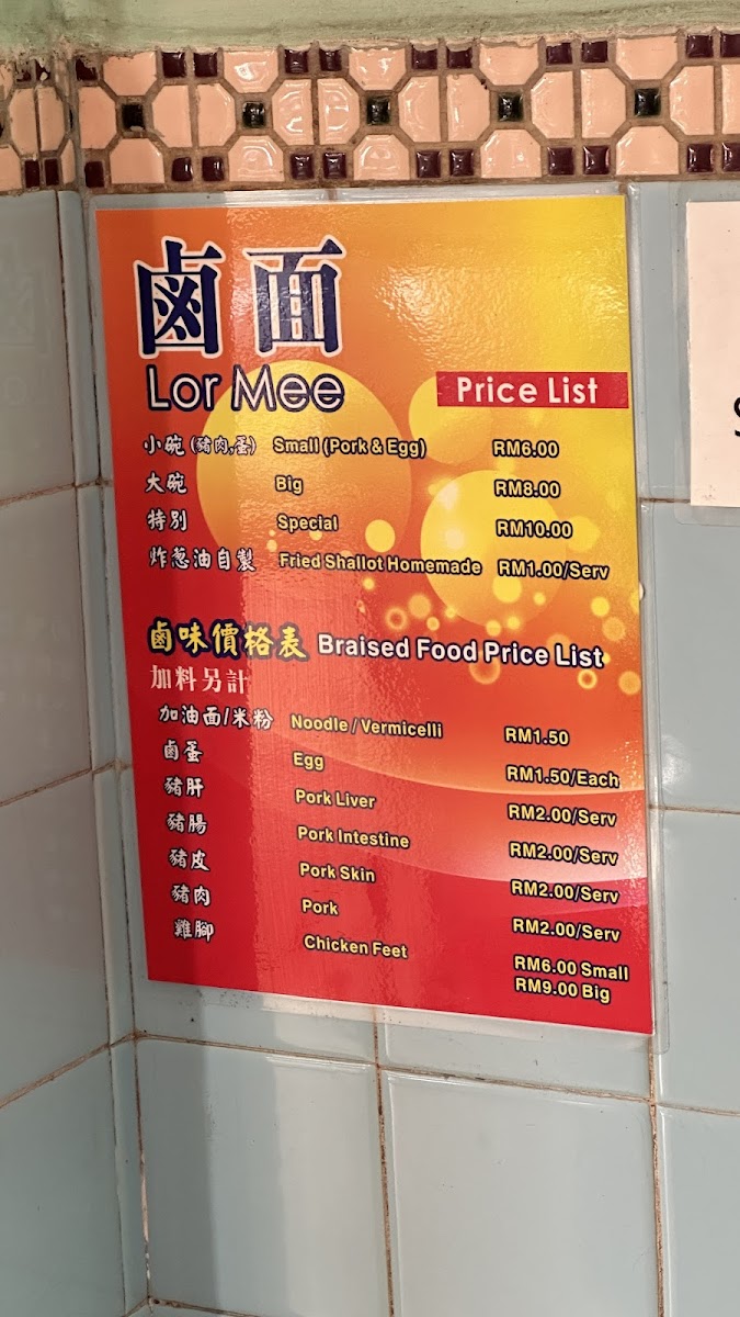 In addition to the Lor Mee, the menu features delightful beverages such as the Iced Kopi O and Iced Chrysanthemum tea, both priced affordably at MYR 3.00 to MYR 3.50. These drinks offer a refreshing complement to your meal, especially on warm Malaysian days.